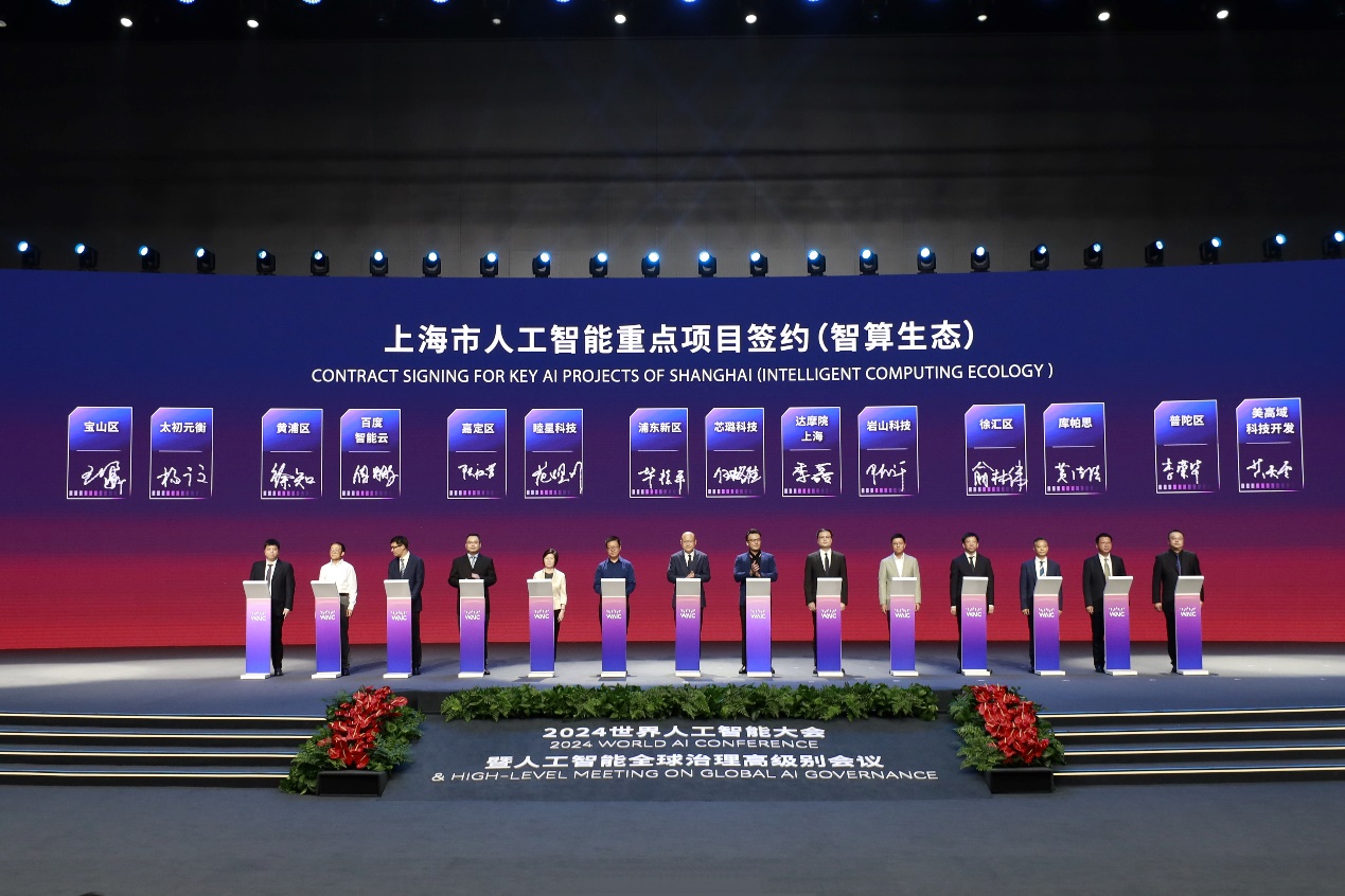 2024年7月6日,在2024世界人工智能大会(WAIC 2024)闭幕式暨上海市人工智能重点项目签约(智算生态)仪式,美高域集团的全资子公司,美高域(上海)科技开发有限公司,作为普陀区唯一代表企业出席签约,展示了美高域在人工智能领域智算生态的技术实力和市场影响力。