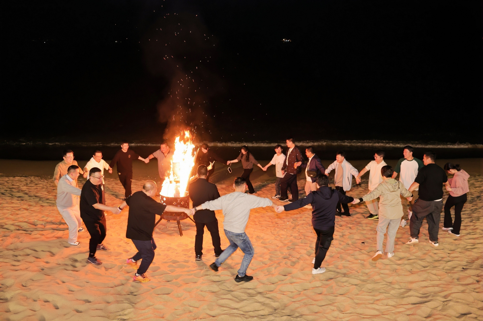 从破冰互动的欢笑,到旱地冰壶战场上的战术协作;从戈德堡骨牌精密协作中的屏息凝神,到营地篝火映照下的真挚心声;直至四地同仁齐心协力共筑沙堡的动人瞬间——我们不只是同事,更是并肩作战、彼此托付的战友!