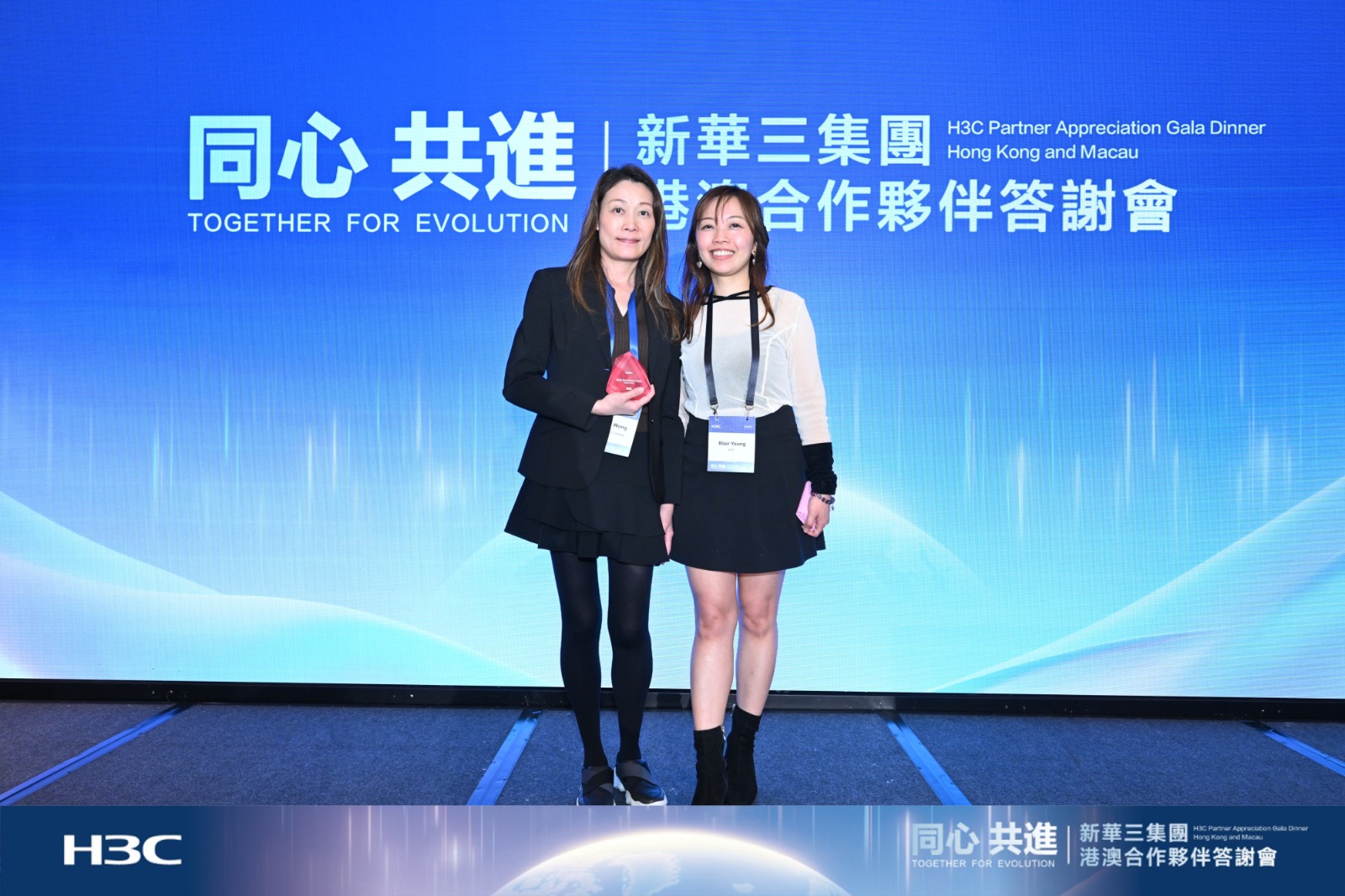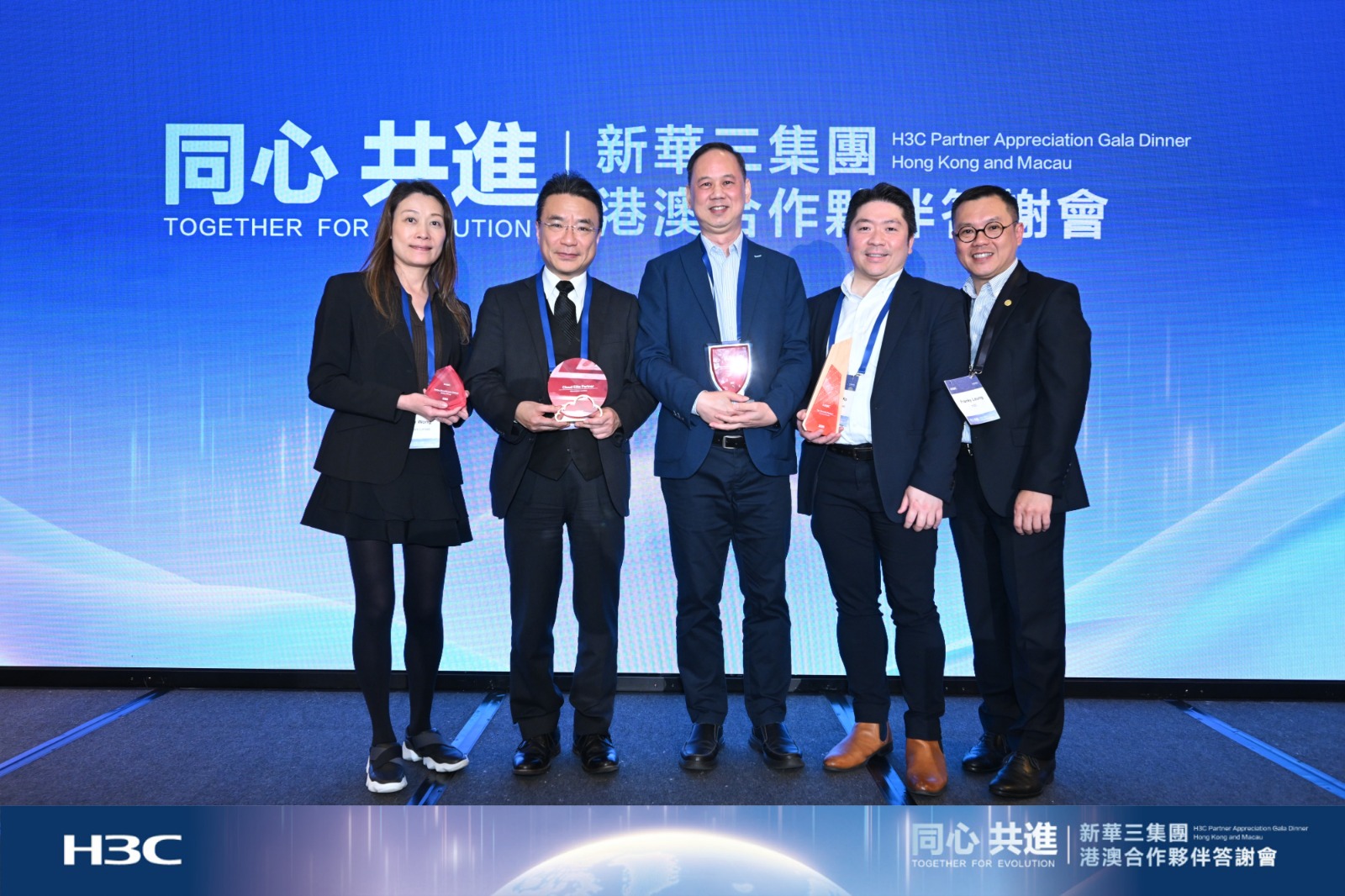 最佳成长伙伴奖 云端菁英合作伙伴奖 网络安全菁英合作伙伴奖 同时,恭喜我们销售团队的 Haidy Wong 荣获销售卓越奖!美高域一直与新华三紧密合作,这次获奖充分肯定了我们在业务增长、云服务和网络安全方面的卓越表现,也体现了新华三对我们的信任与支持。衷心感谢新华三!